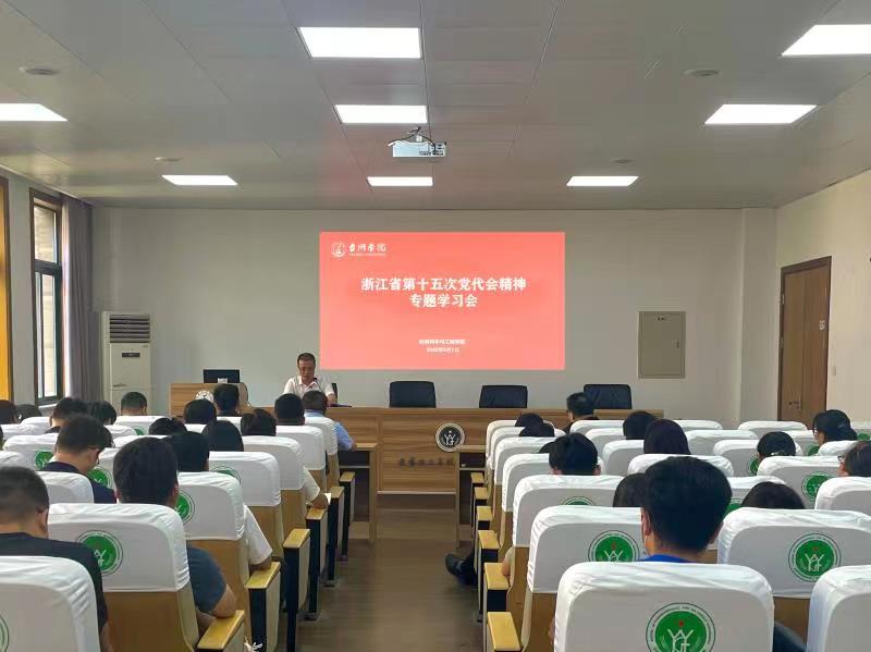 9月1日下午,材料学院召开浙江省第十五次党代会精神专题学习会,学院党总支副书记吴高都领学,全体教职工参加。