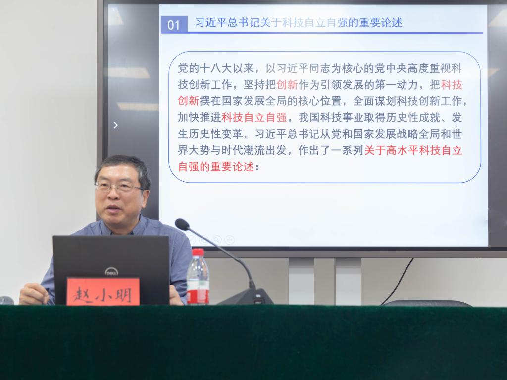 10月24日下午,校党委委员、副校长赵小明以“勇立潮头 为加快实现高水平科技自立自强努力奋斗”为主题为材料科学与工程学院师生党员作专题党课。学院党总支书记吴建波主持,师生党员、研究生参加。