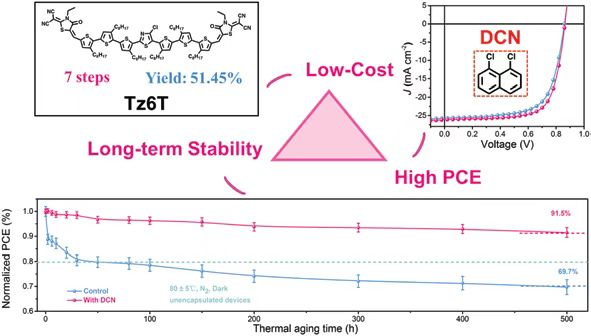 图2 固体添加剂调控提升形貌质量,制备高效、高稳定性、低成本的寡聚噻吩光伏电池