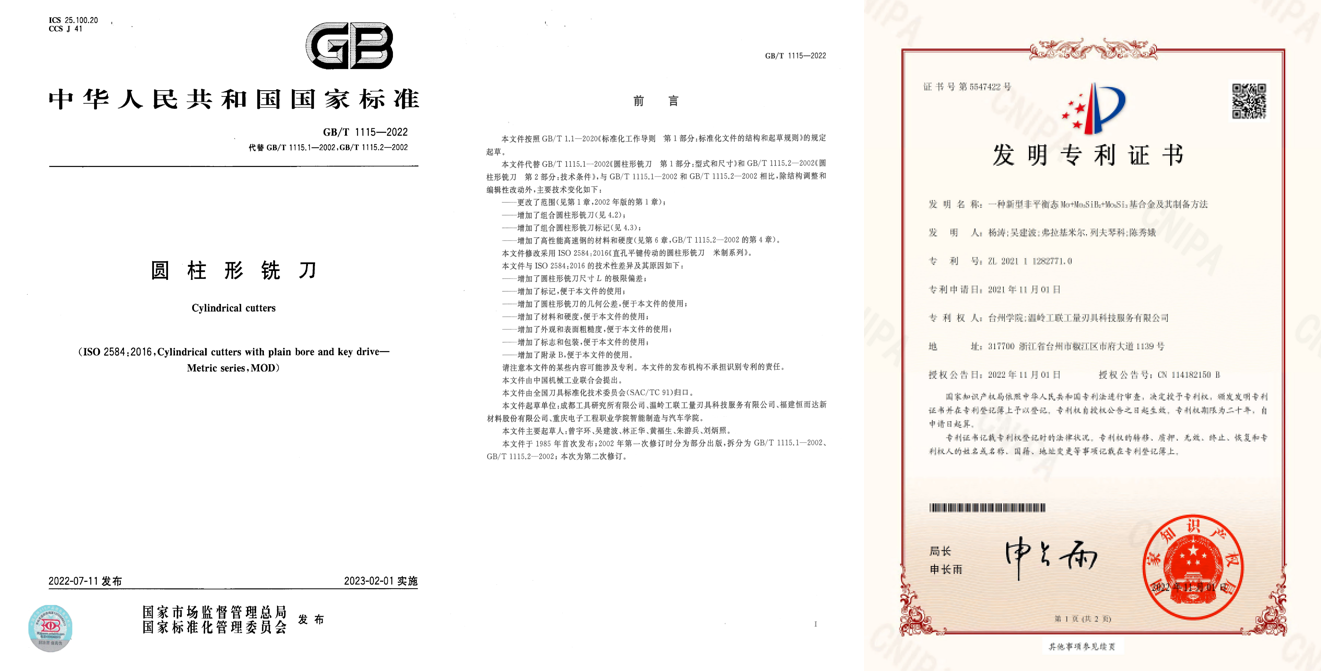 (4)科技小分队承担企业委托的刀具表面含氟纳米基膜的研究与开发、高硬度AlCrN硬质涂层的制备及增韧技术研究、低摩擦系数硬质润滑复合涂层及其制备技术的开发等10余项横向项目,联合企业起草国家标准《GB/T 25672-2021电锤钻和套式电锤钻》、《GB/T 1115-2022圆柱形铣刀》2项,联合申请发明专利“一种新型非平衡态Mo+Mo5SiB2+Mo5Si3基合金及其制备方法”1项。