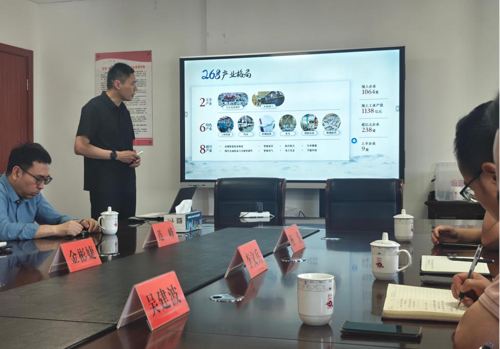 调研首站,我院一行与沙门镇政府进行了面对面的座谈交流。会上,沙门镇党委书记陈志法、党委副书记金彬婕、副镇长金辉、金瓴誉咨询公司董事长连峰等同志详细介绍了玉环市与沙门镇当地产业发展的总体情况,系统阐释了当地产业战略布局,特别指出水暖阀门、汽车零部件等支柱产业对高性能材料的迫切需求,并表达了与学院深度合作、共同推进人才高地建设和科技创新的强烈愿望。吴建波书记代表学院表达了进一步促进产学研深度融合、基于我院优势科研方向切实解决企业技术难题的决心和信心。双方一致认为,通过产学研深度合作和技术需求精准对接,可以更有效地整合资源,实现优势互补,共同推动产业、科技、人才一体化发展。