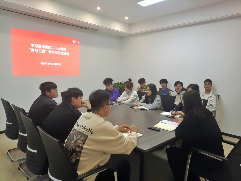 11月17日下午,材料学院青马学员学习党的二十大报告交流会在学院会议室举行。本次交流会由院分团委书记主持,院学生会、分团委骨干成员参加。