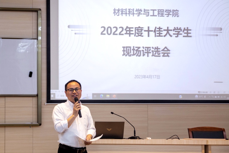 4月17日晚,材料学院在椒江校区学术报告厅举办2022年度“十佳大学生”评选活动。材料学院党总支书记吴建波,全体辅导员、班主任代表以及150余位学生代表参与评选会。