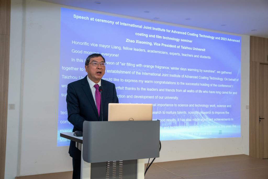 11月25日,先进涂层技术联合实验室在温岭举行成立仪式,校党委委员、副校长赵小明出席并讲话。温岭市副市长梁海涛,以及来自俄罗斯、白俄罗斯、乌克兰、斯洛伐克、波兰、韩国、德国等国的十余位专家学者应邀参加仪式。