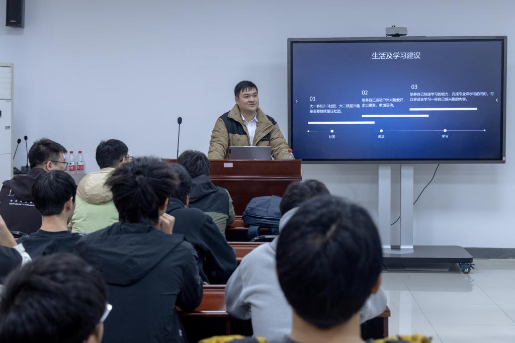 “再聚首,共话成长”。下午,两位优秀校友代表开展了“学长回来了”校友讲座,他们结合在校期间的学习生活,与学弟学妹们进行了深入交流。他们嘱咐学弟学妹们在校期间要珍惜时光,尽早做好规划,有针对性地培养自己的专业能力、沟通能力、组织能力等,为毕业后更高质量就业和升学增加有益的筹码。同学们纷纷就学习生活中的疑问和困惑向学长们提问,学长们也都一一耐心解答。