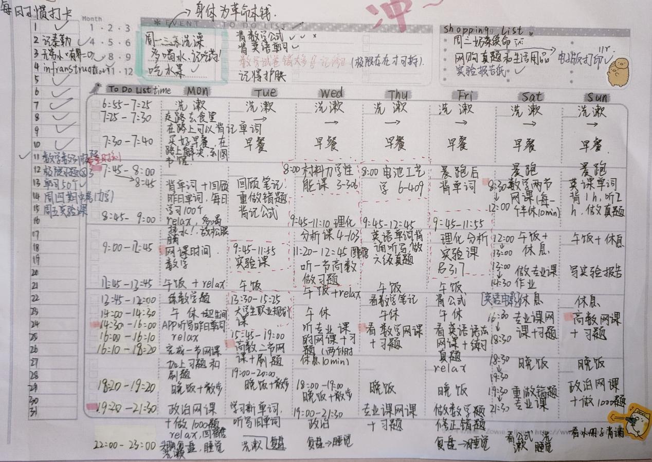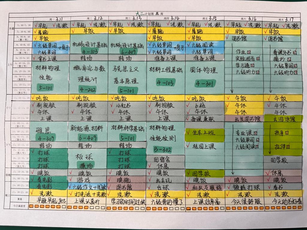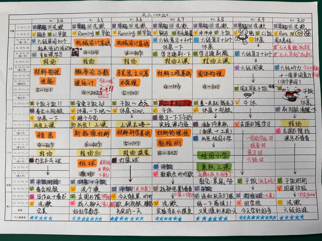 近日,材料学院举行了“最牛学习计划表”大赛,旨在引导同学们合理规划时间,提高学习效率、培养良好的学习习惯和自我管理能力。