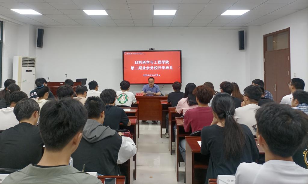 5月23日下午,材料科学与工程学院举行第二期业余党校开班典礼。学院党总支书记吴建波作开班动员讲话并讲授首堂党课。