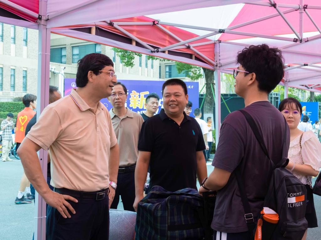 暖心服务,以“心”迎新。学院领导、老师及学生志愿者们早早就位,引导新生快速完成一站式报到流程,耐心解答新生及家长的疑问。校领导深入迎新现场指导工作,并与新生亲切交谈。学院迎新点为舟车劳顿的家长和新生提供解乏解渴的新鲜水果茶。当日下午,学院领导、辅导员及班主任走访了新生寝室,了解新生来校适应情况,并对新生提出期望,希望他们在未来的大学生活中能平衡好学习和娱乐的时间,并提前做好规划,度过充实的四年。
