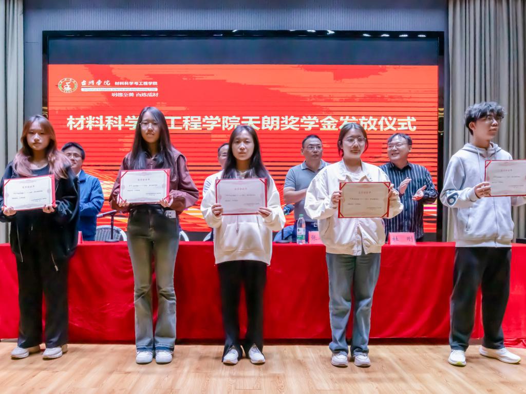 10月10日晚上,材料学院在3207隆重举行2024年天朗奖学金颁奖仪式,杭州天朗金属科技有限公司董事长张冬兵、总经理杜刚莅临,学院党总支书记吴建波、副院长戴晟出席,仪式由党总支副书记李文兵主持。