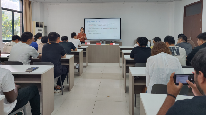 会上,实验教学中心副主任徐爱娇对新生进行了实验室安全培训。