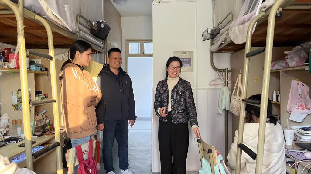 走进学生宿舍,郑丽君详细询问了同学们的住宿感受,寝室成员相处情况,学业进展情况,以及对自己未来职业发展的规划和期望。她耐心听取了同学们的意见和建议,鼓励大家要珍惜宝贵的大学时光,充分利用学校提供的各种资源和平台,努力提升自己的综合素质和能力。走访过程中,郑丽君还仔细察看了宿舍的卫生和安全情况。她强调,宿舍是同学们学习、生活的重要场所,大家要共同维护宿舍的卫生和整洁,消除安全隐患。同时,她还特别提醒同学们要防范电信网络诈骗,保护好自己的个人信息和财产安全。