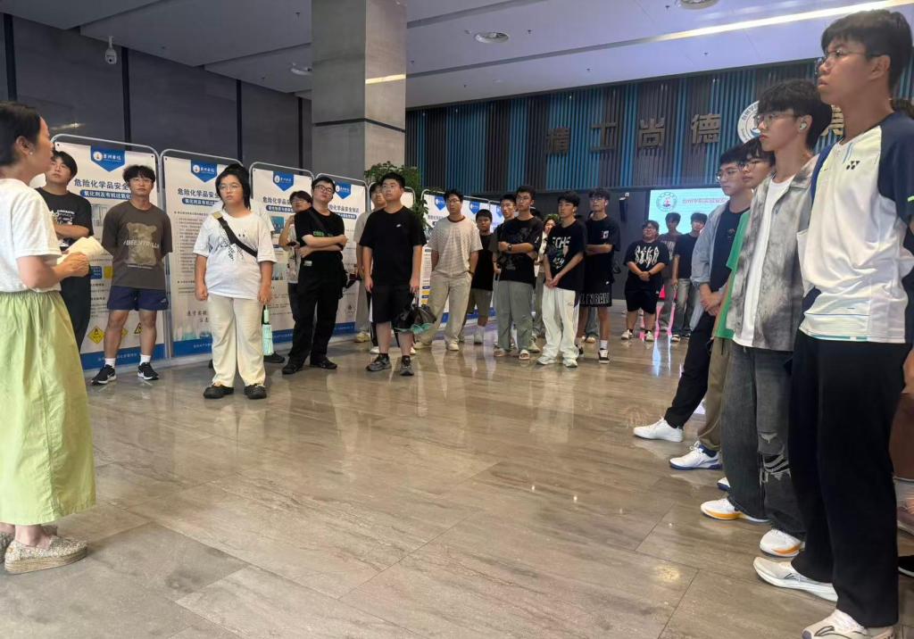 活动伊始,徐爱娇老师带领新生有序参观教学与科研实验室安全展板。展板以 “图文 + 案例” 的形式,分为 “实验室消防安全”、“实验室危化品安全及危险源控制”、“危险事故警示” 三大板块。徐老师结合材料专业实验特点,细致讲解危化品危险源控制及危化品购买、储存、使用过程中的注意事项等内容;强调实验室安全准入制度,“进实验室必穿实验服、戴护目镜,这是保护自身安全的第一道屏障”;在 “事故警示” 区域,徐老师通过过往高校实验室轻微事故案例,让新生直观认识到 “未规范存放试剂”、“违规操作仪器” 等行为的潜在风险,提醒大家时刻紧绷安全弦。