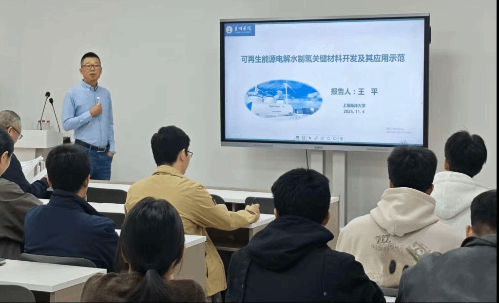 为加快全省海岛绿色能源及新材料重点实验室平台建设,扩展师生前沿科研视野,11月4日上午,上海海洋大学王平教授应邀来校作《可再生能源电解水制氢关键材料开发及其应用示范》学术讲座。本次讲座由省重实验室主任王家成教授主持,材料学院和重点实验室部分科研骨干教师及学生参加活动。