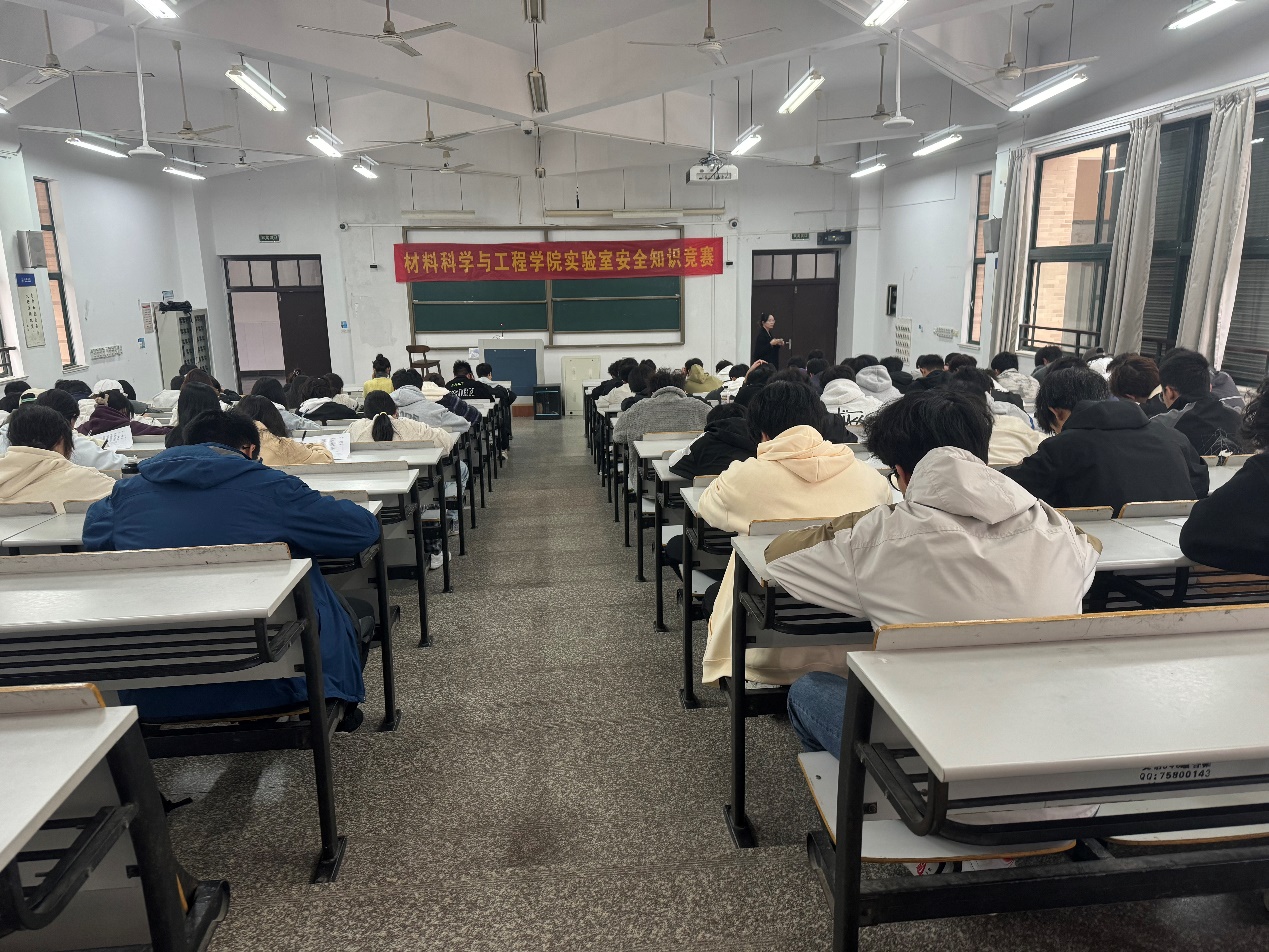 13:30开始新生安全知识竞赛,竞赛采用线下笔试的方式进行,材料科学与工程学院24级新生参加。30道判断题,20道单项选择题,10道多项选择题,题目涵盖实验室用电安全、消防安全、药品安全、实验室管理等方方面面的知识,答题时间30分钟,安排两名教师监考,根据成绩高低选取一等奖10名,二等奖15名,三等奖20名。通过本次活动,使同学们掌握实验室相关安全知识,在以后的实验过程中规避危险操作,能正确处理突发情况,能够更好地保护自身安全和实验室安全。